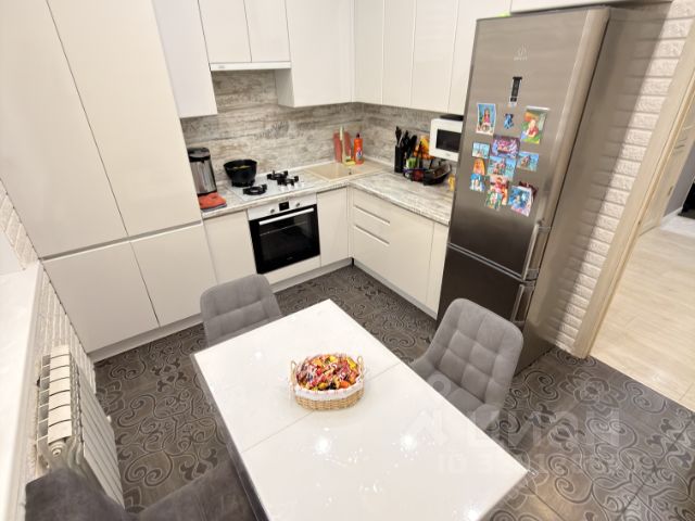 Отличная планировка квартиры, окна на 2 стороны, просторная прихожая и коридор, остается встроенная кухня "Мария", фильтр встроенный для питьевой воды, шкафы в коридоре (один их них купе), столы журнальные и кухонный, шкафы в ванной комнате, шкафчики на балконе, встроенный шкаф и антресоль в коридоре. Квартира в хорошем состоянии.