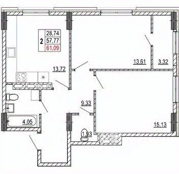 Кухня-гостиная площадью 24,43 м² это идеальное место для проведения времени с семьей и друзьями. Просторная и светлая, она станет центром вашей домашней жизни.
