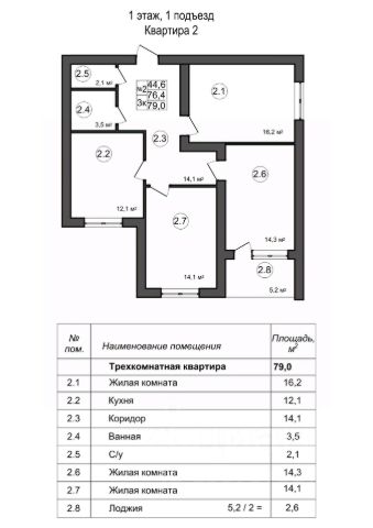 Квартира площадью 82.7 кв.м.