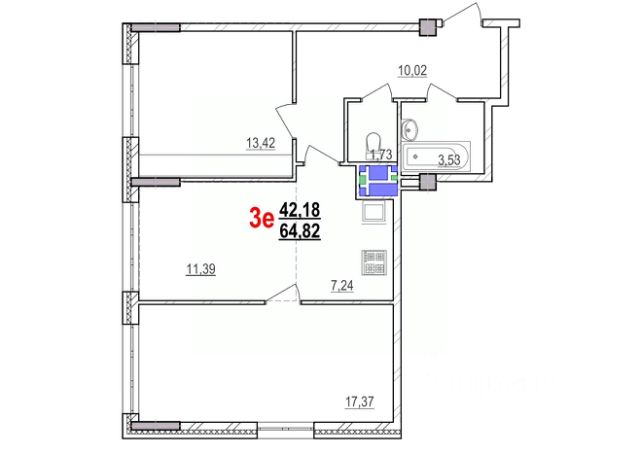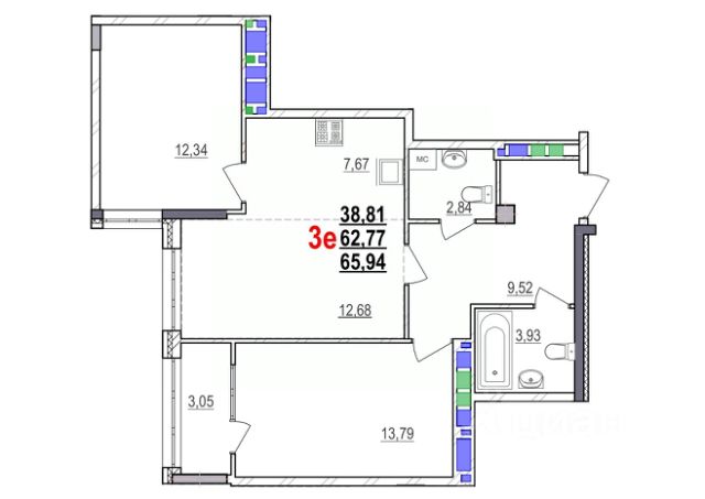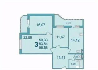 В продаже квартира площадью 62.1 м². Квартира расположена на 7-м этаже жилого комплекса "Жемчужина", объект 95, количество комнат — 3.