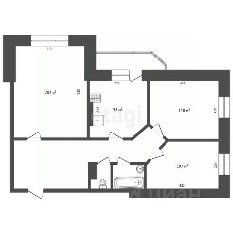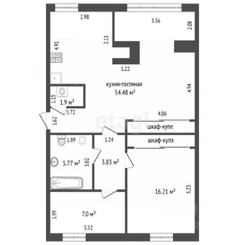 • ✅ Минимальная площадь: 57,8 м²