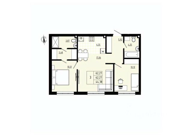 Продаётся 3-комнатная квартира в строящемся доме (Позиция 6 Блок-секция V-VI), срок сдачи: IV-кв. 2026, общей площадью 64.93 кв.м., на 4 этаже. Расположение, транспортная доступность