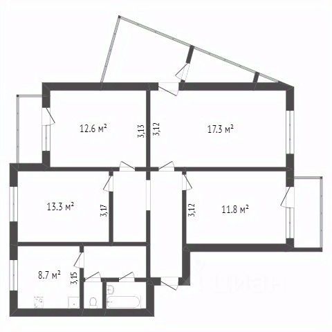 • 3 спальных комнаты (10, 7 м2, 12, 7 м2 и 12, 5 м2)