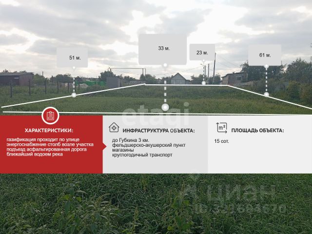 Продается участок земли площадью 619 м². Участок имеет уклон, что может быть интересным для тех, кто хочет создать уникальный ландшафт или построить дом с красивым видом. На данный момент земля не обработана, что дает возможность новым владельцам реализовать свои идеи с нуля. Село, в котором расположен участок, предлагает все необходимые удобства: есть ФАП для медицинской помощи, магазин для покупок и остановка общественного транспорта, что делает жизнь здесь комфортной. Если вы ищете место для строительства загородного дома или дачи, этот участок может стать отличным вариантом. Звоните для получения дополнительной информации! Код пользователя: 187604 Номер в базе: 10089709
