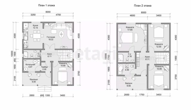 Дом имеет два полных этажа с плитами перекрытия.
