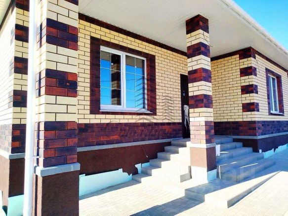Дом построен из блоков и сверху отделан короедом.