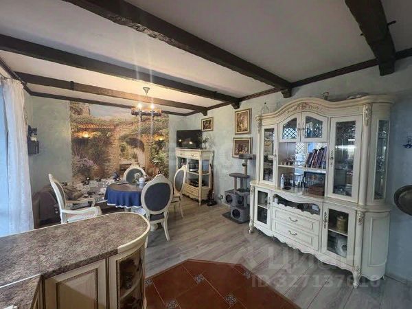 Особая атмосфера в столовой с выходом на крытую террасу и сад. Просторная кухня, стена декорирована фреской, красивый кухонный гарнитур, остается бытовая техника (итальянская SМЕG, Boch, пароварка, духовой шкаф, варочная панель, вытяжка). Любимое место для семьи!