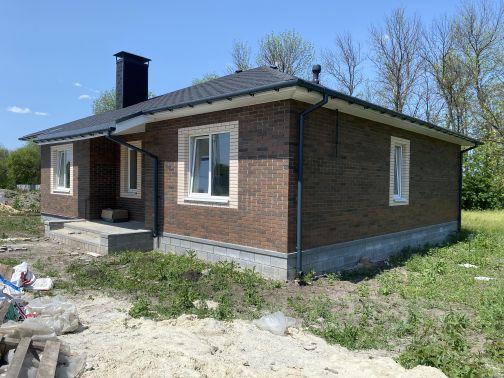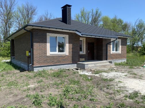 Двухэтажный кирпичный дом, утеплен 10-см. утеплителем, покрыт короедом. Утопает в зелени. В двухстах метрах небольшой дубовый лес.