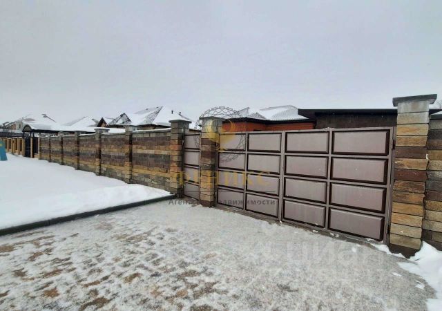 Участок полностью огорожен с трех сторон забором с проф листа, фасадная сторона из дорогого камня завода Арбет, с металическими воротами.