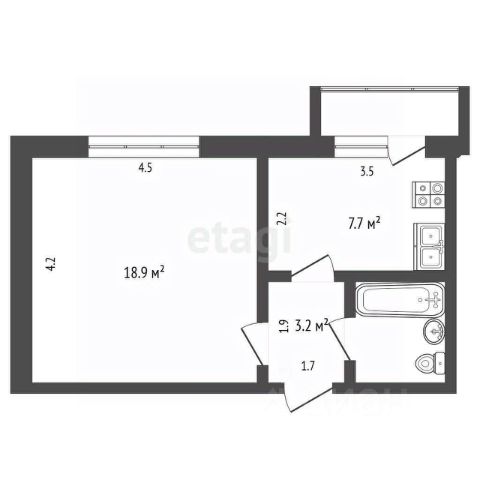 Площадь 38,1 кв.м.