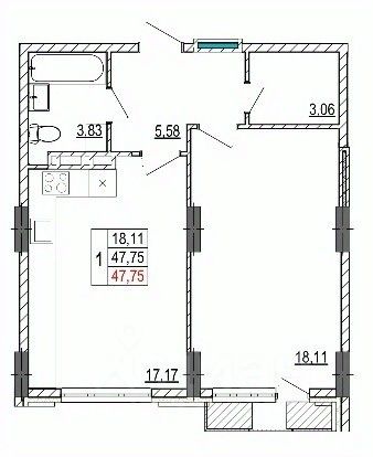 • ✅ Минимальная площадь: 46,3 м²