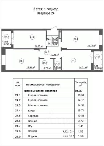 Квартира площадью 82.7 кв.м.