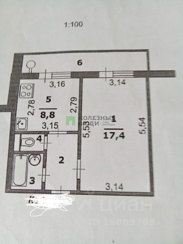 Квартира общей площадью 37.5 кв.м.