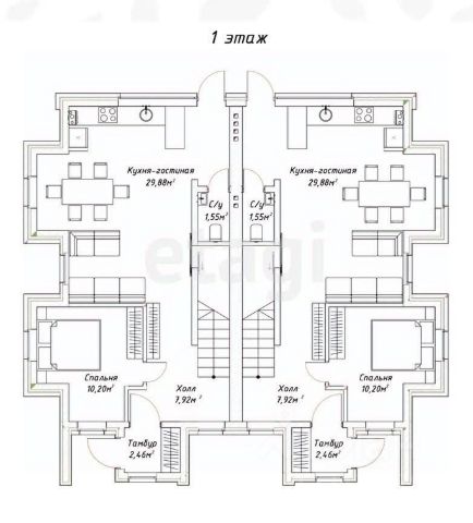 -Для каждого таунхауса предусмотрено 2 парковочных места.