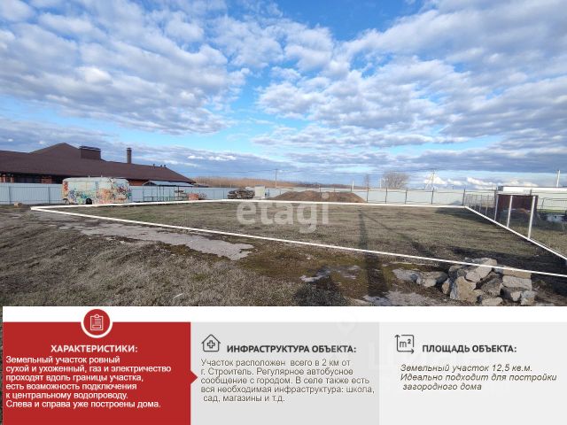 Продается земельный участок 12,5 соток (1250 кв.м) в прекрасном районе села Быковка, всего в 2 км от г. Строитель. Идеально подходит для строительства загородного дома. Слева и справа уже построены дома. Газ и электричество проходят вдоль границы участка, подключение без проблем, что сэкономит ваши средства. Возможность подключения к центральному водопроводу. В селе есть вся необходимая инфраструктура. Регулярное автобусное сообщение с г. Строитель. Участок ровный и сухой. На этом участке наш партнер-застройщик может построить дом по одному из готовых проектов, адаптированных под семейную ипотеку. Это отличная возможность сэкономить время и силы на проектировании и строительстве. Мы поможем вам подобрать оптимальный вариант и оформить все необходимые документы. Срок строительства до 4-х месяцев. Центр недвижимости и ипотеки "Этажи" теперь и в Строителе! Наш адрес: г. Строитель, ул. 5 Августа, 18А, 2 этаж. Работая с компанией "Этажи", вы получаете: Широкий выбор недвижимости: Найдите свой идеальный дом или квартиру среди множества вариантов! Выгодная ипотека: Оформите ипотеку по сниженным процентным ставкам сэкономите на переплатах! Полная юридическая защита: Наши специалисты обеспечат полное юридическое сопровождение сделки, гарантируя безопасность и законность! Гарантия качества: Получите гарантийный сертификат, подтверждающий качество сделки и надежность сотрудничества! Бесплатные консультации: Получите профессиональные консультации по всем вопросам купли-продажи недвижимости! Скидки для участников СВО и других льготных категорий граждан: Воспользуйтесь специальными скидками и условиями! Срочный выкуп недвижимости: Независимо от состояния и местоположения! Код пользователя: 174110 Номер в базе: 7336386