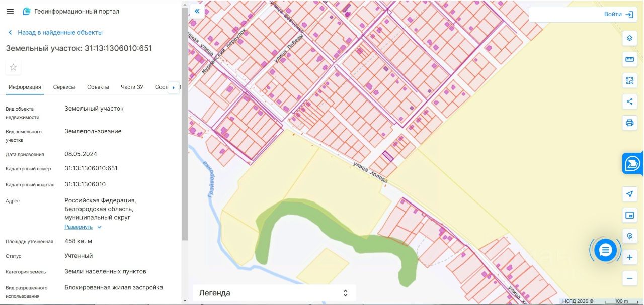 Земельный участок с кадастровым номером 31:13:1306010:651, площадью 458 кв.м, категория земель земли населенных пунктов, расположенный по адресу: Российская Федерация, Белгородская область, муниципальный округ Грайворонский, город Грайворон, улица Цветочная, земельный участок 2а