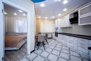 Апартаменты полу-студийной планировки: территория кухни объединена с гостиной и прихожей в единое свободное пространство, изолированная спальня и просторный совмещенный санузел. Детали интерьера совершенно соответствуют представленным фотографиям. Охраняемая территория, закрытый двор. Для прогулок выход из двора в аллею с фонтаном и местами отдыха. Остановка 100м, 3 остановки к центру. Рядом ТЦ Рио (300м), ТРЦ МегаГринн (1,4 км), Аэропорт (400м), Автовокзал (500м) и многое другое это достойная альтернатива гостиничному номеру. В Вашем распоряжении все необходимое для краткосрочного и длительного проживания включая всю бытовую технику, интернет, телевидение, столовые принадлежности, постельные принадлежности. Горячая вода и индивидуальное отопление без отключений, теплый пол, система очистки воды. Угловая ванна с джакузи, тропический душ, гигиенический душ, панорамное зеркало в ванной комнате. 3 smart TV, Wi-Fi, сплит-система (кондиционер), стиральная машина, эл. чайник, свч, плита, духовой шкаф, холодильник, утюг, фен. Предоставляются отчётные документы с QR-кодом - кассовый чек онлайн.