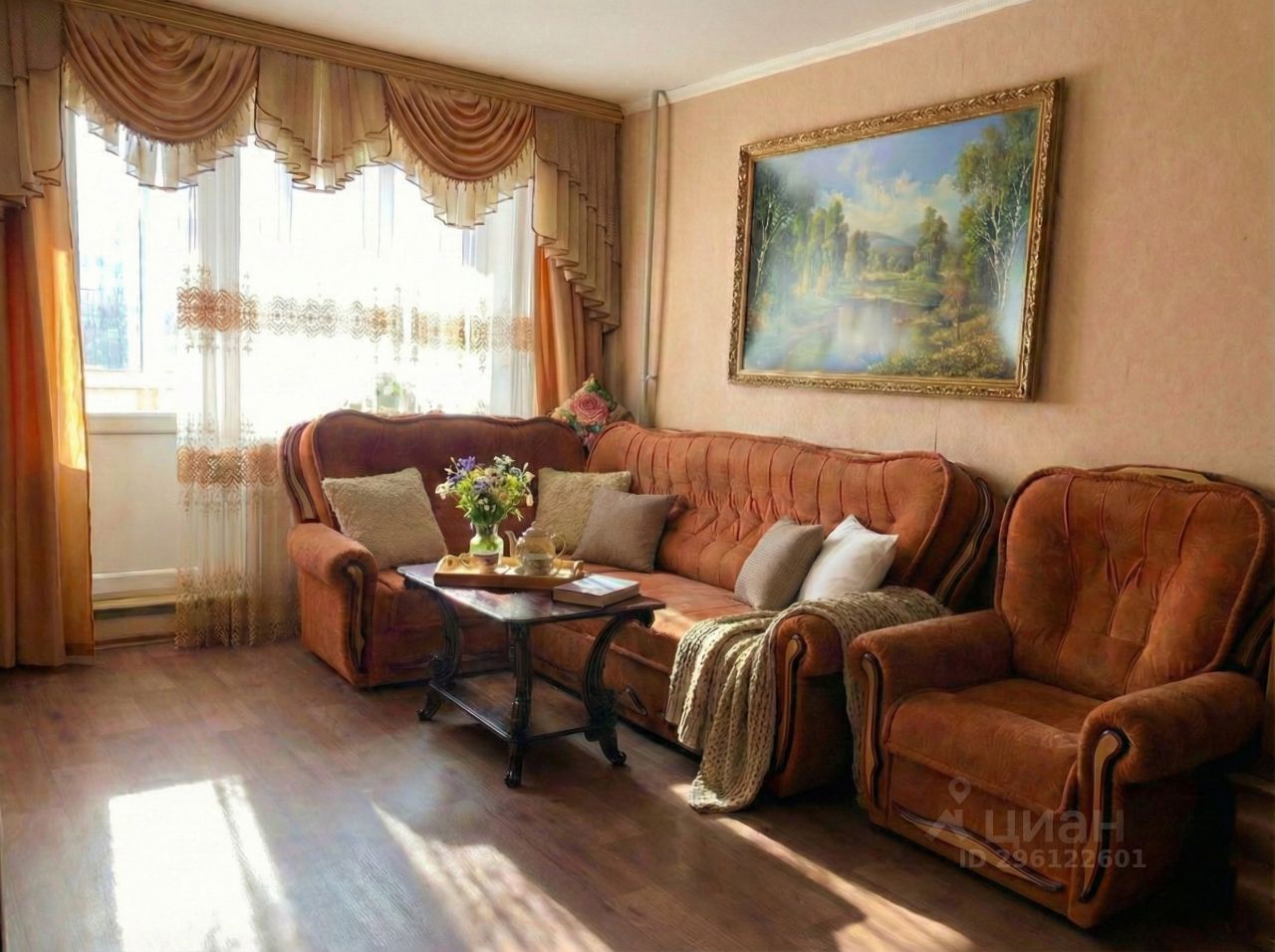 Квартира расположена в центре, но в тихом и зеленом дворе.