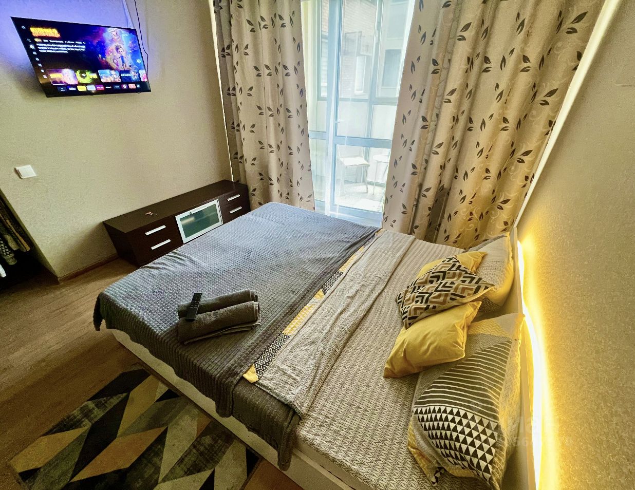 Есть все удобства. фото реальные. Новая мебель, современный ремонт, чистое постельное белье и полотенца, посуда , бытовая техника, посуда, цифровое ТВ, бесплатный вай фай, кондиционер, одним словом все как дома.