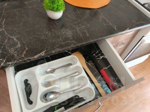 Укомплектованная кухня с обеденной зоной; посуда, чай, сахар;