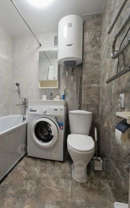 В санузле есть новая глубокая ванна, средства гигиены, фен, стиральная машина.