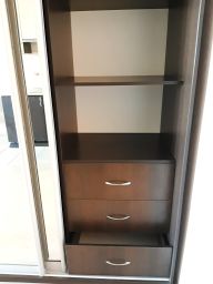 В квартире есть всё необходимое для комфортного проживания (встроенная кухня, кухонный стол, стулья, табуреты, диван, 2 больших, очень вместительных шкафа-купе, холодильник, стиральная машина-автомат, кондиционер, СВЧ печь).