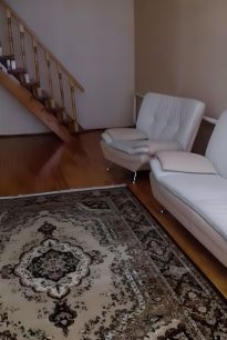 Сдам дом, состоящий из комнаты, кухни, сан узла, прихожей, с мебелью: диван, 2 кресла, шкаф, кухонный гарнитур, обеденный стол, холодильник, стиральная машинка.