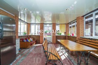 Рядом большая остекленная беседка с печью барбекю. Там же дровница.