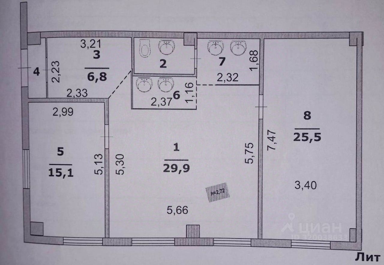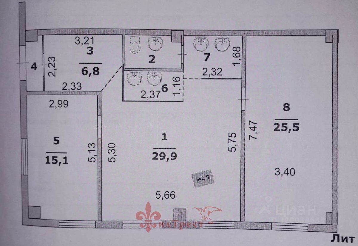 Помещение имеет две изолированные комнаты 15,1 кв.м. и 25,5 в.м. и проходную комнату 29,9кв.м. Планировка удобная, на входе коридор с раздевалкой, далее проходим в основные помещения. Имеется оборудованное место для приема пищи, туалет, душевая и умывальники.