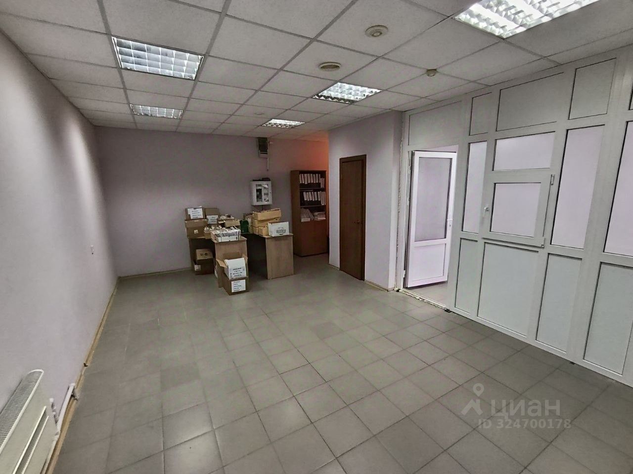 В помещении выполнен косметический ремонт, подвесной потолок со встроенными светильниками высотой 2,8 м, на полу кафель, стены покрашены, отопление трубы пластик, пластиковые окна.