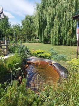 На территории есть собственный пруд (запустил в том году 400 кг карпа), вокруг построены: