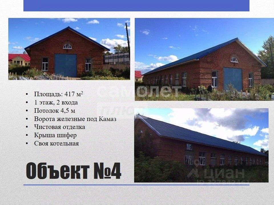 Объект 4 площадь 417 кв.м, 2 этажа, 2 входа, ворота под Камаз, чистовая отделка, своя котельная, пластиковые окна и двери.