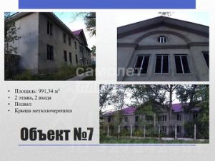 Объект 7 площадь 991 кв.м, 2 этажа, 2 входа, подвал, крыша металлочерепица, пластиковые окна и двери.