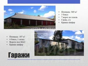 Гаражи: площадь 369 кв.м, 3 бокса, 7 ворот под газель, сауна, с/у, три смотровые ямы, подсобные помещения, центральное отопление.
