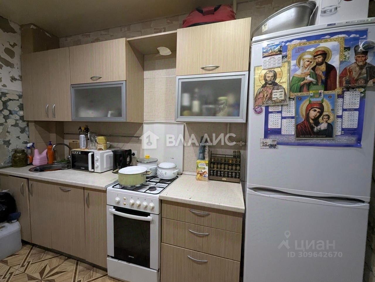 Состояние квартиры: в квартире не закончен косметический ремонт (осталось доделать кухню), стены оклеены обоями, на полу ламинат, на кухне полы-плитка, натяжные потолки, с/у раздельный, отделан плиткой, установлены счетчики на свет и воду. Окна пластиковые. В квартире остаётся встроенная кухня.