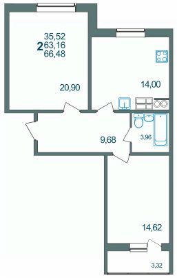 Продаётся 2-комнатная квартира в сданном доме (Квартал 6 Позиция 9.1), срок сдачи: III-кв. 2023, общей площадью 66.3 кв.м., на 7 этаже. Расположение, транспортная доступность