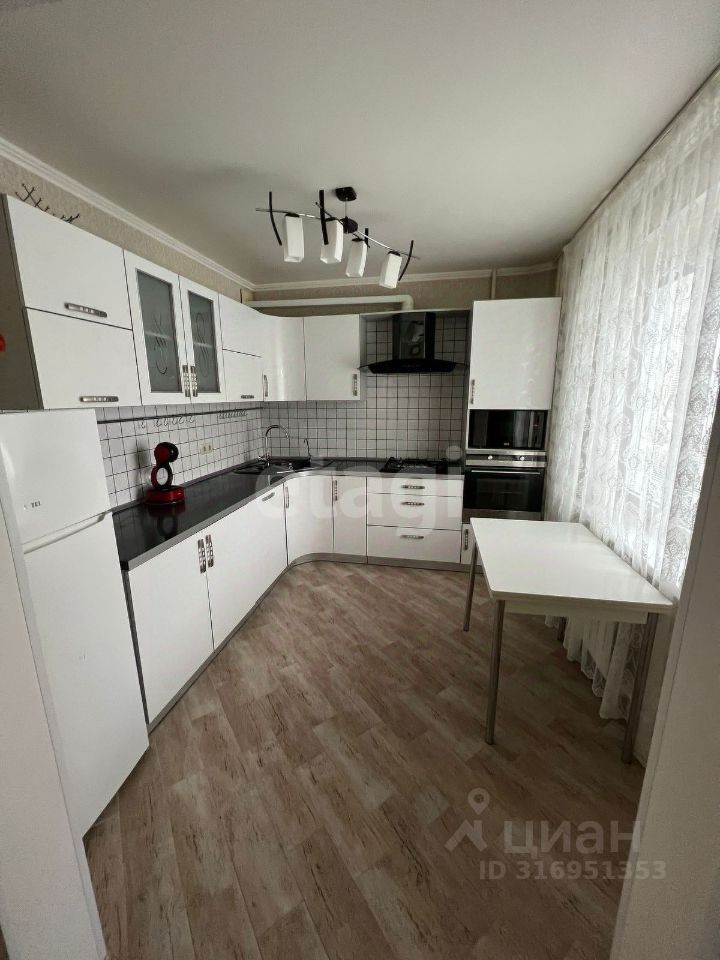 Современный кухонный гарнитур оборудован посудомоечной машиной 60 см., фильтром для питьевой воды, плита газовая, духовой шкаф, микроволновая печь.