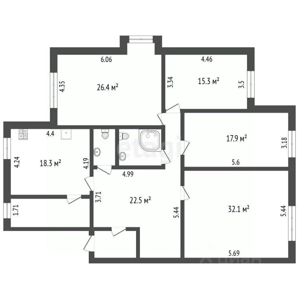 Огромная, просторная холл-гостиная 54,6 м2, две спальни 26,4м2(с гардеробной комнатой) и 15,9 м2. Кабинет 17,9 м2. Два санузла в кафельной плитке. Мечта любой хозяйки просторная кухня 18,3 м2, оснащена современной мебелью и техникой. Топочная(бойлерная) 6,5 м2, Здесь установлен мощный двухконтурный котел, стиральная машинка, сушилка, гладильные принадлежности.