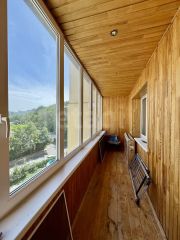 Балкон и лоджия выходят на разные стороны дома . Открывается прекрасный панорамный вид на город .