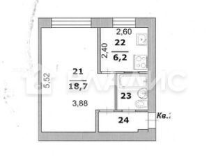 Квартира имеет удобную планировку: жилая площадь составляет 18,7 квадратных метров, а кухня — 6,2 квадратных метров. Окна выходят во двор на Дом быта, что обеспечивает тишину и спокойствие. Косметический ремонт позволяет въехать и жить сразу, без дополнительных вложений.