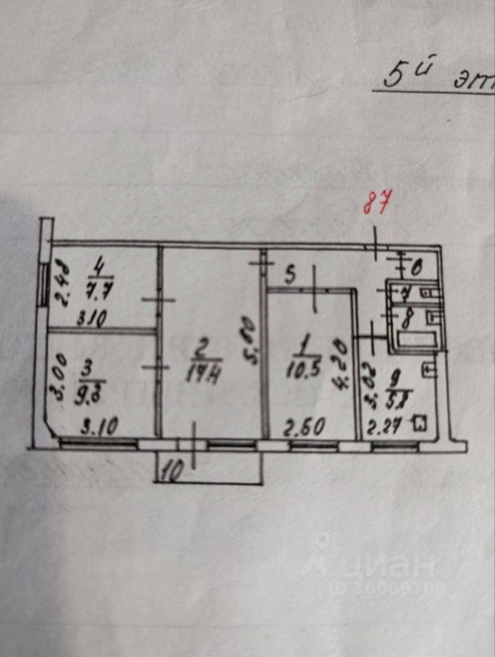 Три изолированные комнаты площадью 10,5+9,3+7,7 квадратных метров и одна проходная комната ( зал) площадью 17,4 квадратных метров.