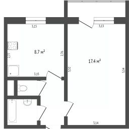 34 м²