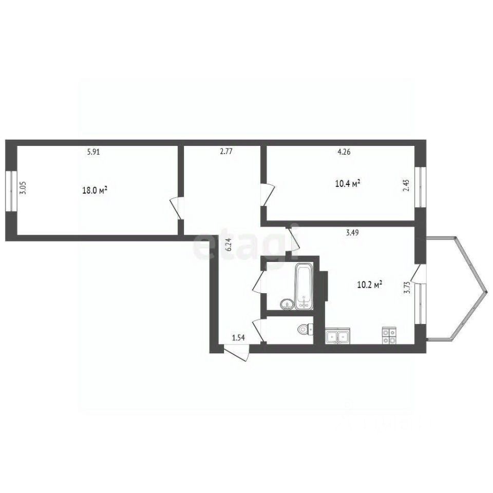 Балкон совмещен с кухней.