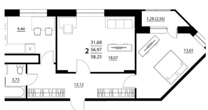 2-комн. квартира, 58,18 м²