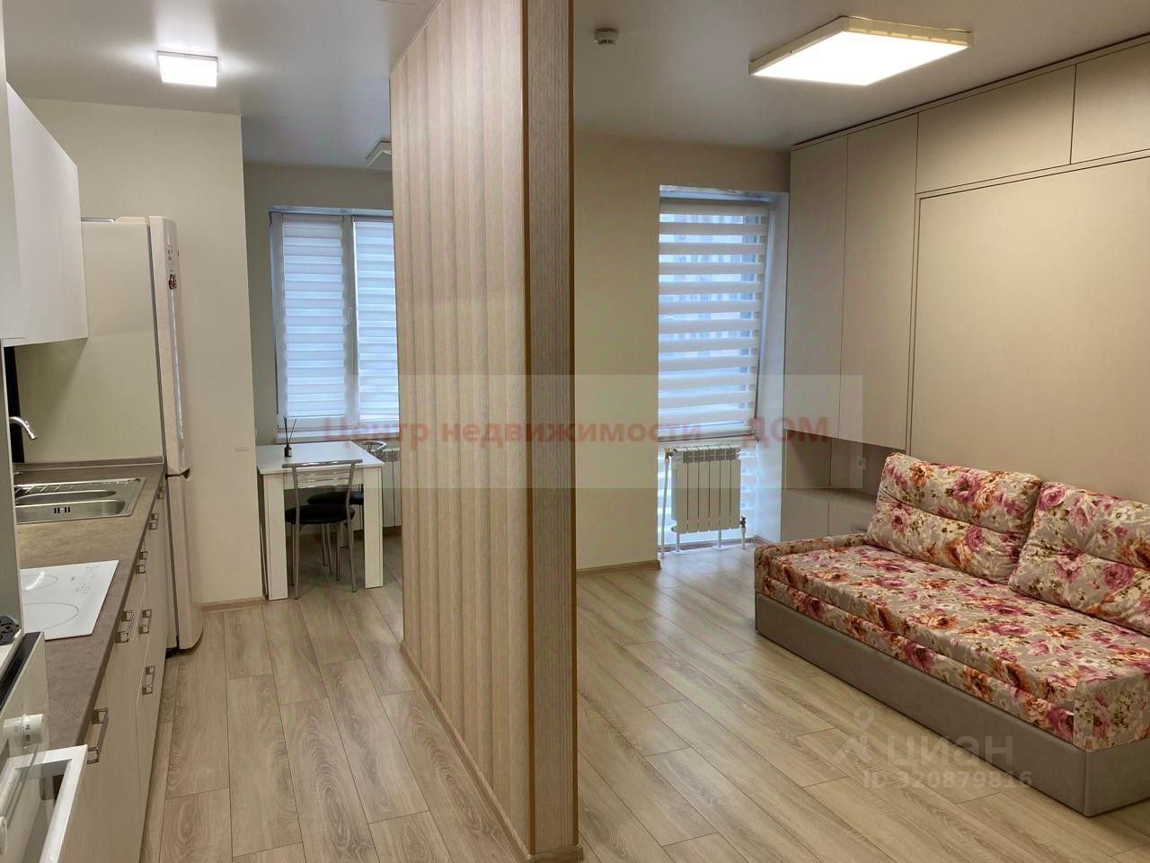 Мебель-трансформер (двуспальная кровать с ортопедическим матрасом складывается в диван, комод, шкаф), кухня- гостиная со встроенной кухней известной фабрики "Мария", со всей бытовой техникой, обеденной зоной, встроенная прихожая. Интернет Wi-Fi.