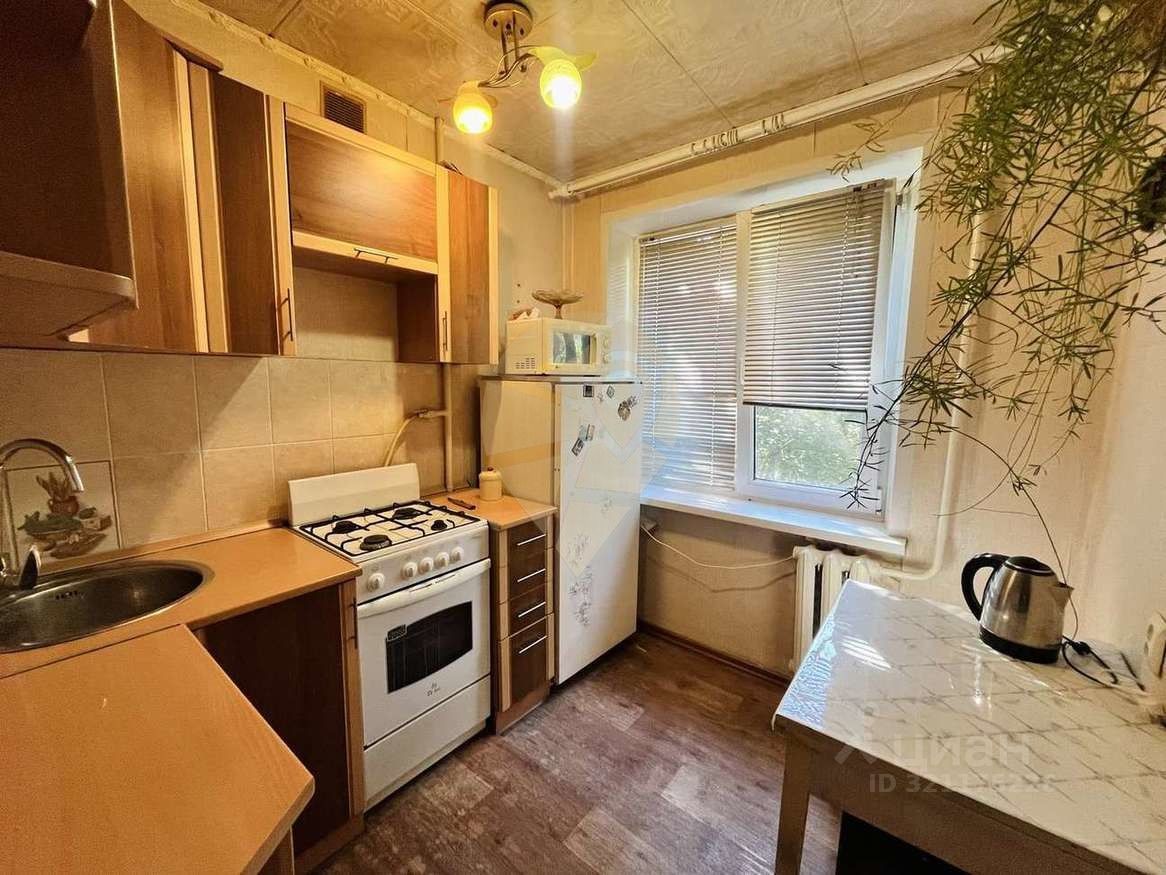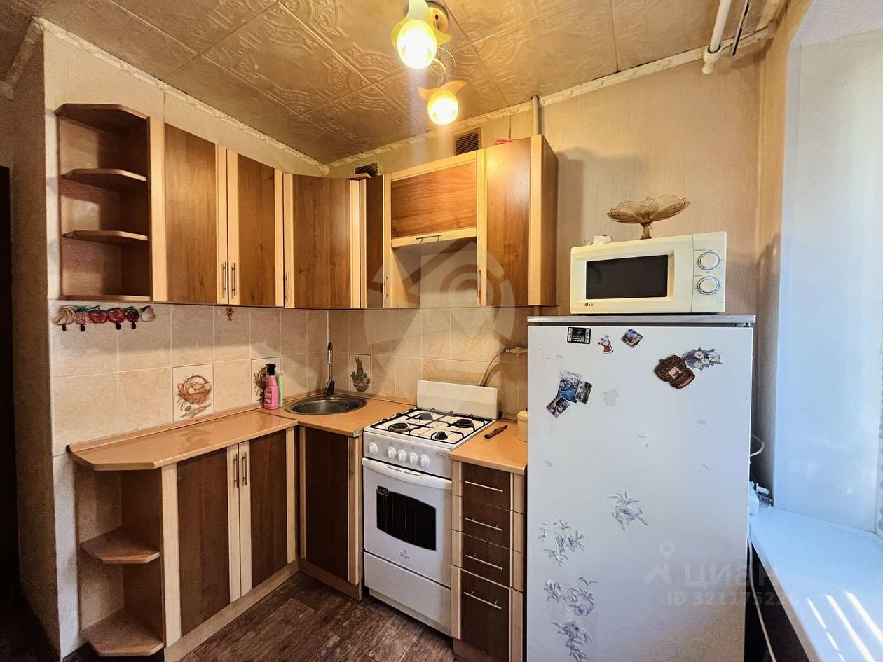 Кухонный гарнитур с плитой и мебель остаются при продаже.