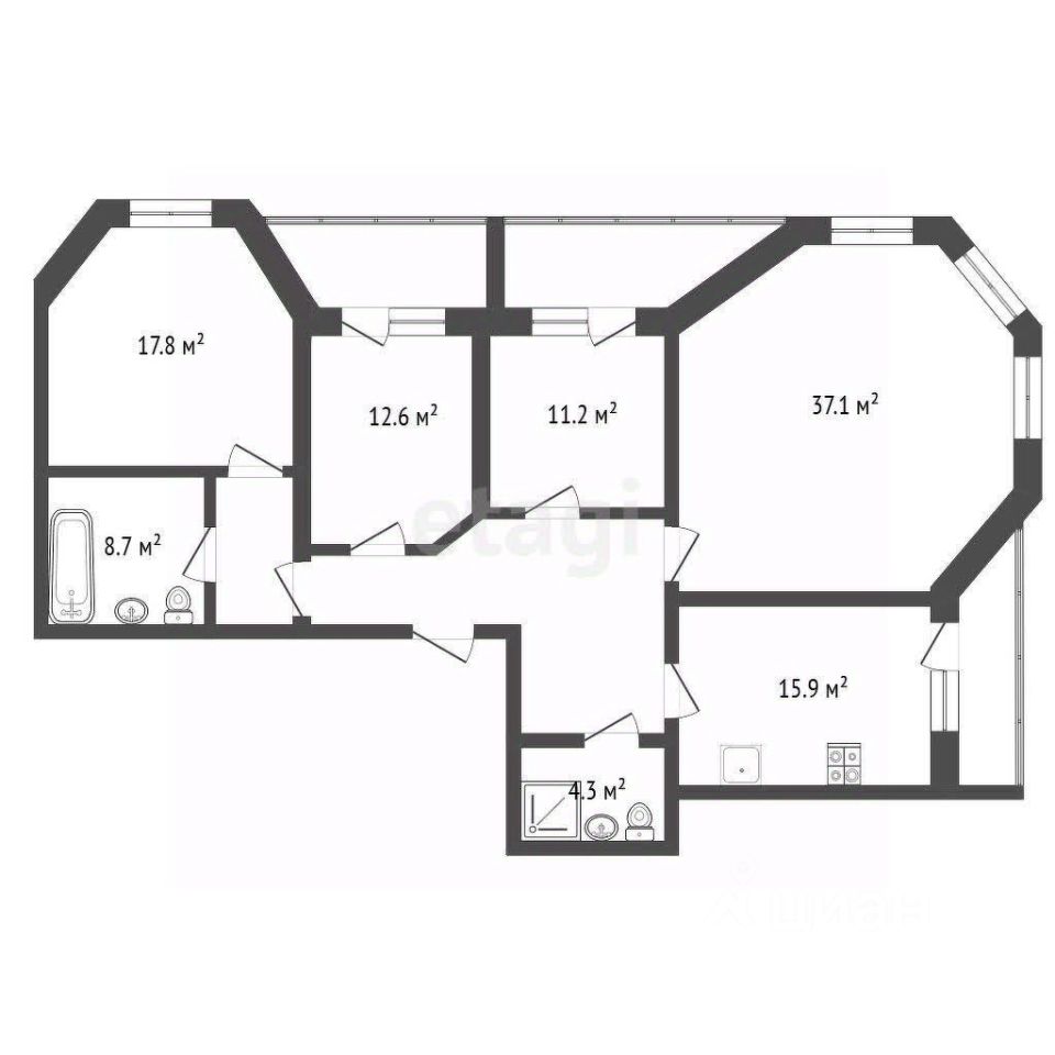 - большая кухня-(15,9 кв.м) с выходом на лоджию.