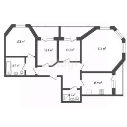 - большой зал = 37,1 кв.м.