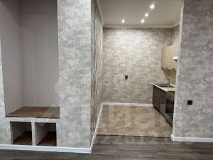 Квартира в состоянии заходи и живи: в прихожей, в зоне кухни и спальни на полу - плитка, в комнате - ламинат, потолки с точечным освещением, сан узел просторный, совместный в плитке светлых тонов.