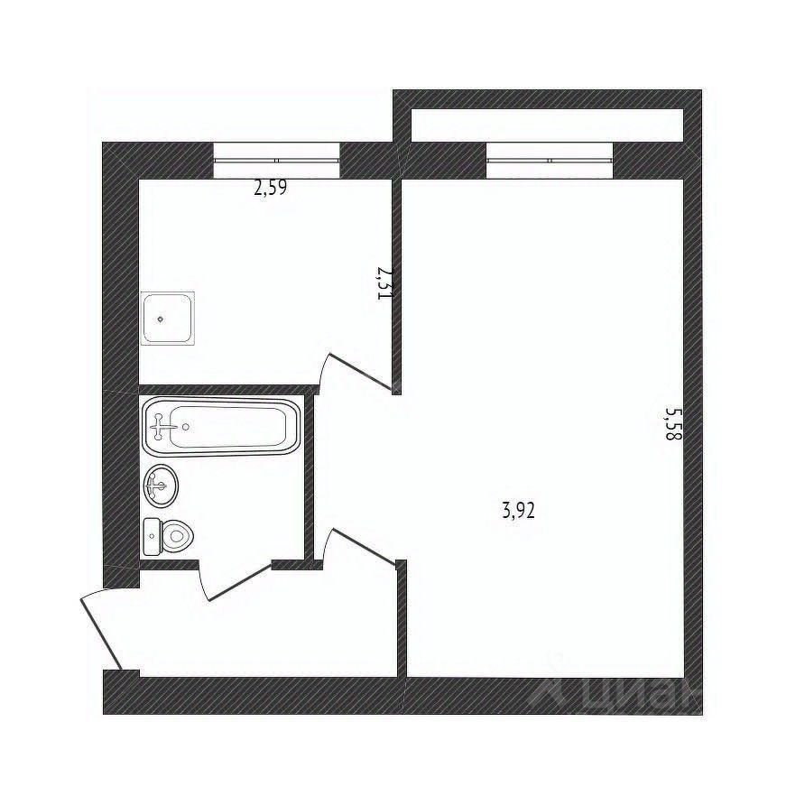 Площадь:32,6 м² (1-комнатная)